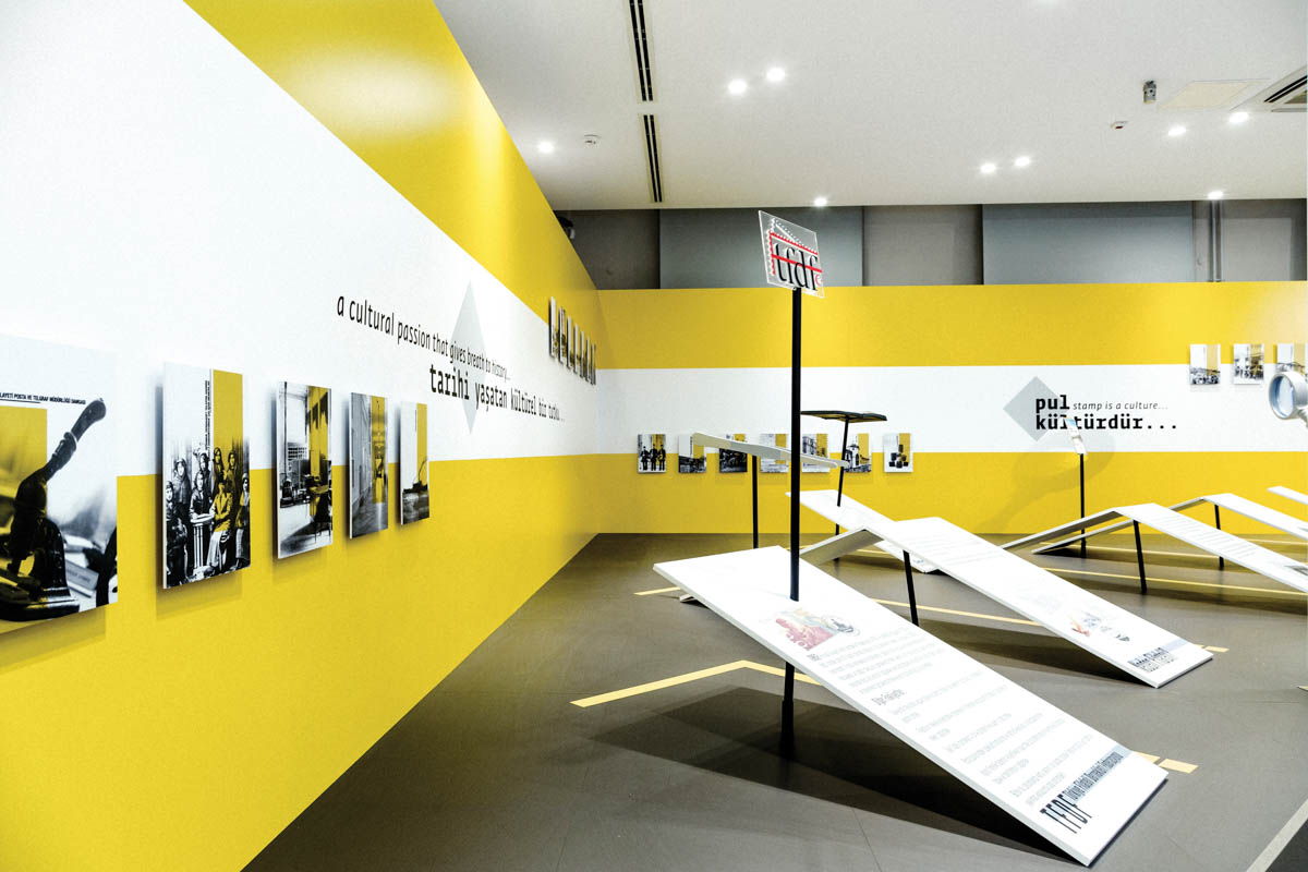“Pul Kültürünün” sergilendiği alanda dijital bölmeler, grafiksel anlatımlar ve geleneksel gösterim biçimleri ustaca kurgulanıyor. Kullanılan grafikler ve dinamik sergileme biçimleri dikkati dağıtmadan, ziyaretçiyi iletmeye çalıştığı bilginin odağında tutuyor. Tasarım kendini belirli bir sırayla okutuyor. Önce iki boyutlu zemindeki grafikle iletişime giriyor, sonra sanki o grafiğin rölyef gibi zeminden kaldırılmış haline yönleniyor ve en sonunda da anlatımın üçüncü boyuttaki gösterimine ulaşıyor göz. Bu mantıksal geçiş zihinde konsantrasyonu sağlıyor ve zorlanmadan doğal bir biçimde anda kalınıyor. Bu durum doğru tipografi boyutları ve renkleri ile de destekleniyor. Dinamiklik mekanın her noktasında hissediliyor ancak tekrardan ve sıkıcılıktan uzak durulmuş olduğu için ziyaretçiyi her detayında yeniden kendine çekiyor.