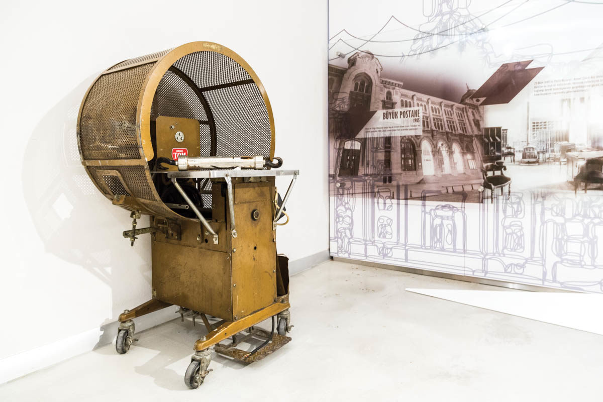 Müzenin birinci katında “Kronolojik Pul Müzesi Koleksiyonu”, Nostaljik PTT” ve “geçici sergi salonu” bulunuyor. Pul arşivi çekmecesi benim açımdan bu alanda belki de en etkileyici bölüm. Burada pulları yaratan sanatçıların el çizimleri, grafik veya fotoğrafla başlayan ve sonrasındaki matbaa sürecindeki renk çalışmalarıyla devam eden görseller sergileniyor. Bir yaratım sürecinin tümüne tanık olmak, bireye, nihai ürünle kurduğu diyalogdan çok daha fazlasını vadediyor. Müzenin belki de sergileme alanları arasında yetişkinler ile en dolaysız şekilde iletişime giren bölümü eski mektupların sergilendiği salon. İnsana dair tüm naif durumlarla aracısız bir bağ kuruyor. Mektupların sergilenme ünitesinde gerek malzemelerle gerekse formlarla müzenin diğer tüm alanlarındaki aynı dinamik yaklaşım yakalanıyor. Gri metal saç ile ahşabın sıcaklığı oldukça uyumlu bir tezatlık yaratıyor. Mektupların tam karşısında hologram teknolojisi ile yaratılan yeni mektup aracılığıyla karşıtlığı sağlamlaştırılıyor. Eski gerçekliğin yeni gerçeklikle birlikteliği bir nevi.
