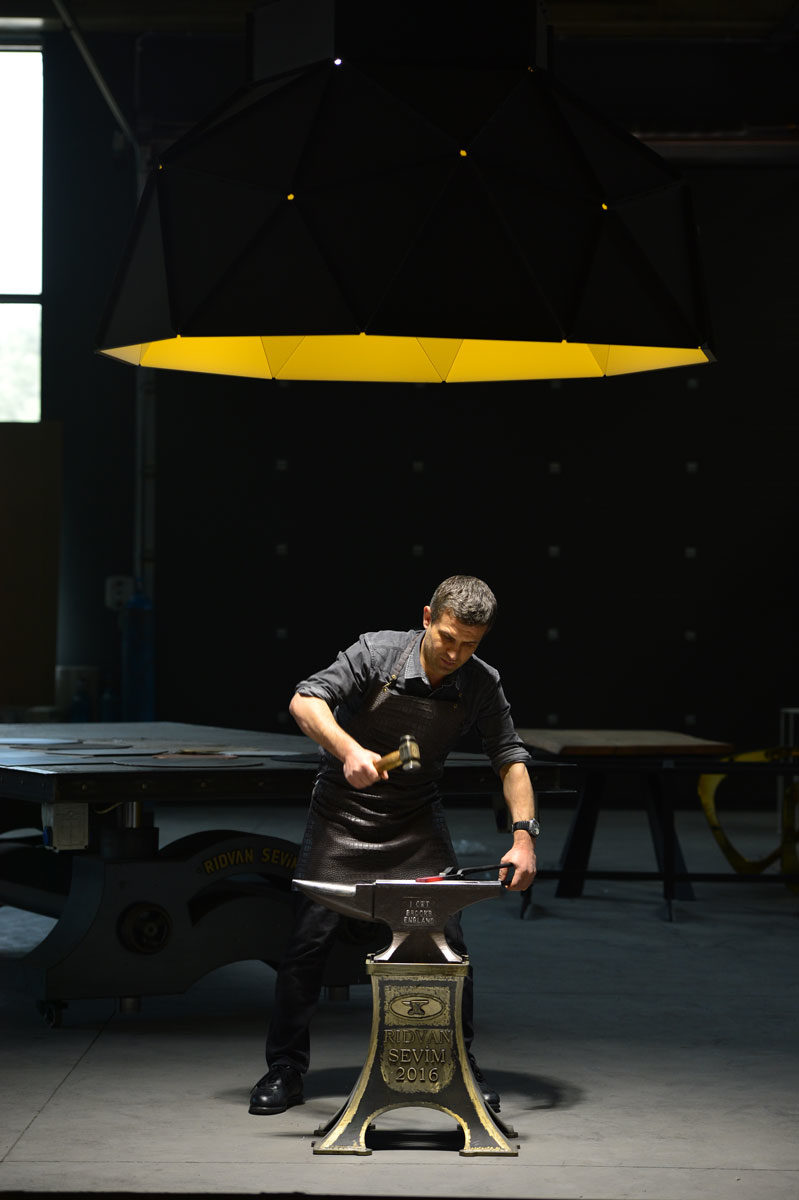O bir usta, aynı zamanda bir sanatkar: Rıdvan Sevim. Bu meslekte 25 yılı geride bırakırken, hala tutkulu bir şekilde sarıldığı işinde yapmak istediği çok şey var. Sanatçı, unutulmaya yüz tutan ne varsa, aynı paslanmazların ışıltısı gibi parlatıp gün yüzüne çıkarmak istiyor. Ustalığını günümüz modern yaklaşımları ile yoğuran, tasarımcılar ile yenilikçi projelere imza atan Sevim, atölyesini de aynı çizgi ile geleceğe taşıyor. Dekorasyonu ile öne çıkan ofisi de kendi imzası.