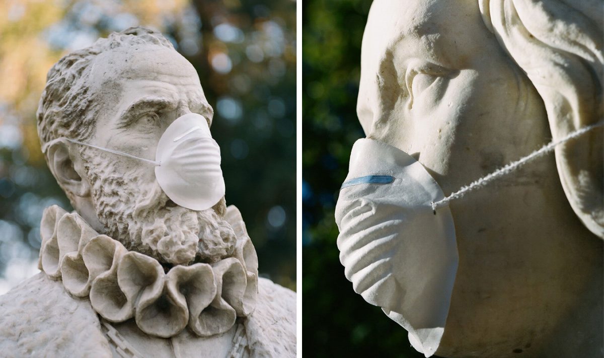 Koronavirüsün etkilerinin belki de en ağır şekilde yaşandığı yerlerden birisi olan İtalya’da Sanatçı Federico Pestilli, şehrin heykellerini koronavirüse karşı korumaya aldı. Roma’da yaşayan sanatçı ülke çapında karantina işlemi uygulamadan günler öncesinde gerçekleştirdiği çalışmada şehirdeki Sezar, Dante gibi önemli şahısların heykellerini maske ile fotoğrafladı. Dünyanın şu anki durumunu tarihi figürlerle ilişkilendirdiği fotoğraf serisi Covid-19 ismini taşıyor.