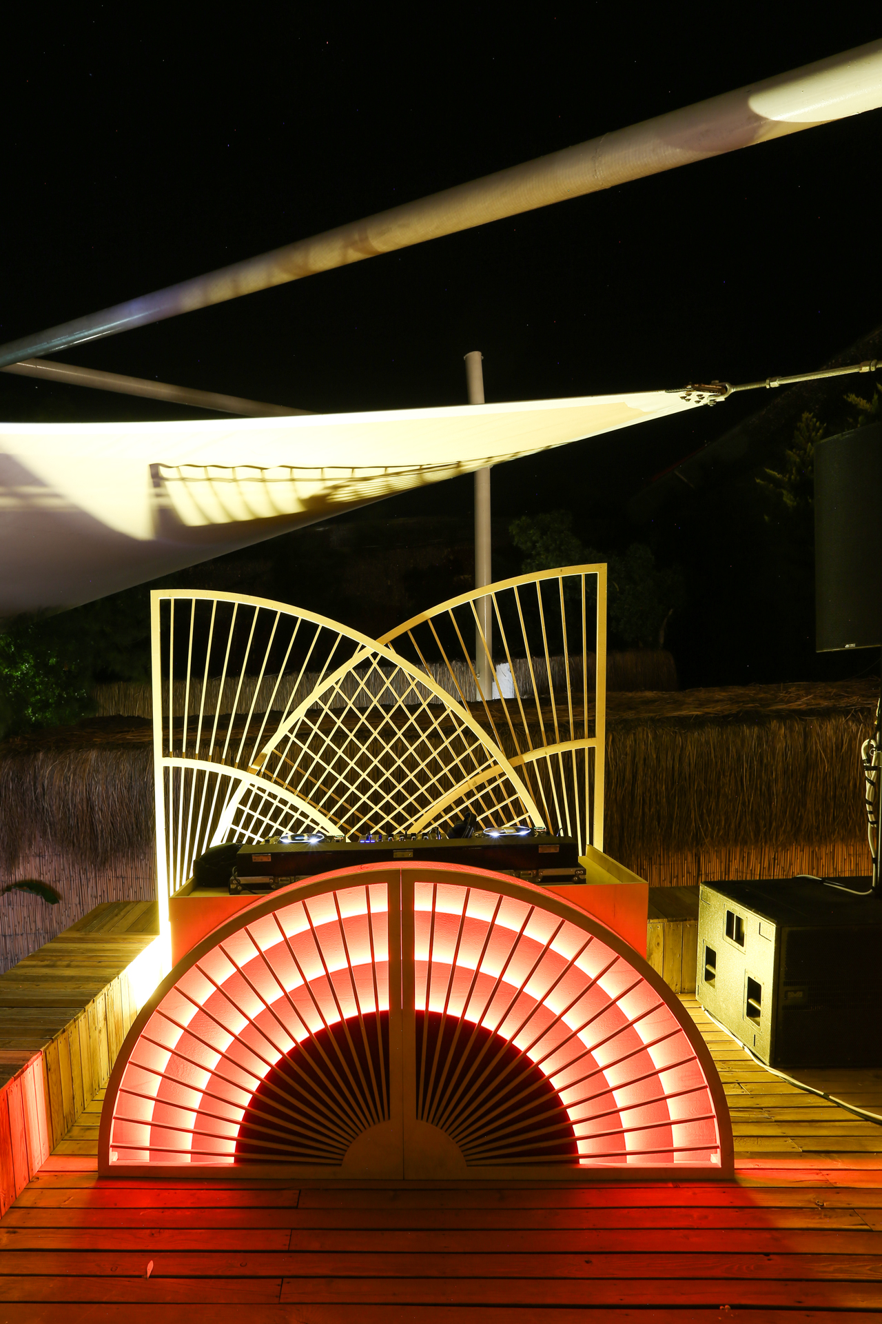 Son dönemde oldukça popüler olan Japon mutfağının elektronik müzikle buluştuğu mekan, mixologların hazırladıkları kokteyller ile genç bir deneyim sunuyor. İnteraktif bir kitlenin odak noktası olan mekanda sosyal medya için fotoğraf çektirme alanlarının olması son dönemdeki bir ihtiyacın ve talebin karşılığı. “Electro Geisha” figürü yakınlaştıkça amorflaşan güçlü görünümüyle bu talebi sonuna kadar karşılıyor. Mekanda tamamlayıcı olarak kullanılan Japon kültürünün vazgeçilmez sembolleri arasında yer alan yelpaze de bütün bir algı oluşturuyor. Bar giydirmede ise kullanılan seramik üzerine uygulanan UV, yenilikçi bir metot olmak ile birlikte tasarıma da katkısını sunuyor.