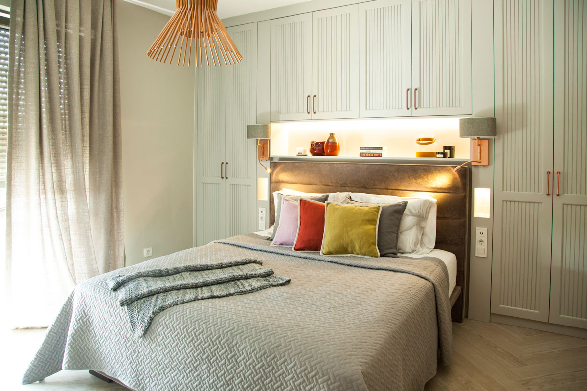 Ebeveyn odası ve banyosu için soft renkler tercih edilmiş. Perdelerde özellikle doğallıkları ve güzelliklerinden ötürü Türk kumaşları kullanılmış. Koridor, mutfak ve odalar Villeroy Boch’un parke görünümlü seramikleri ile döşenerek pratik ve estetik bir görünüm yakalanmış.