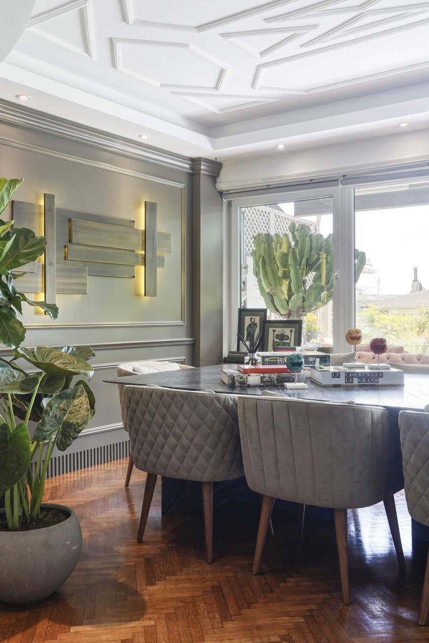 İzmir’den geldiği yıllarda hem ofis hem de ev arayışı içerisinde olan Laxmi Interios Kurucusu Pınar Hacıraifoğlu, Bebek’teki bu daireyi bulduğunda iki arayışına birden çözüm olabileceğini fark ederek home ofis olarak kullanmaya başlıyor. Bebek’te yaşamayı çok isteyen fakat bir türlü aradığı ideal daireyi bulamayan Hacıraifoğlu; Boğaz manzarasına hakim terası, bahçeye açılan geniş ofis odası gibi detayları ile hayallerini süsleyen bu evde başlatıyor hikayesini. Üç sene süren home ofis hayatından sonra Laxmi’nin Bebek ana cadde üzerine taşımasıyla bu daireyi de kendi yaşam alanı olarak kullanmaya karar veriyor ve yeniden şekillendiriyor.
