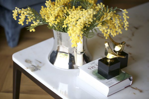 Toros siyahı mat ve cilalı mermer kullanımı alanın karakteristiğini belirliyor ve Autoban’a ait siyah deri ve sıcak ahşap mobilyalar buna destek oluyor. Pirinç ayaklı mermer orta sehpa ile de görünüm tamamlanıyor.
