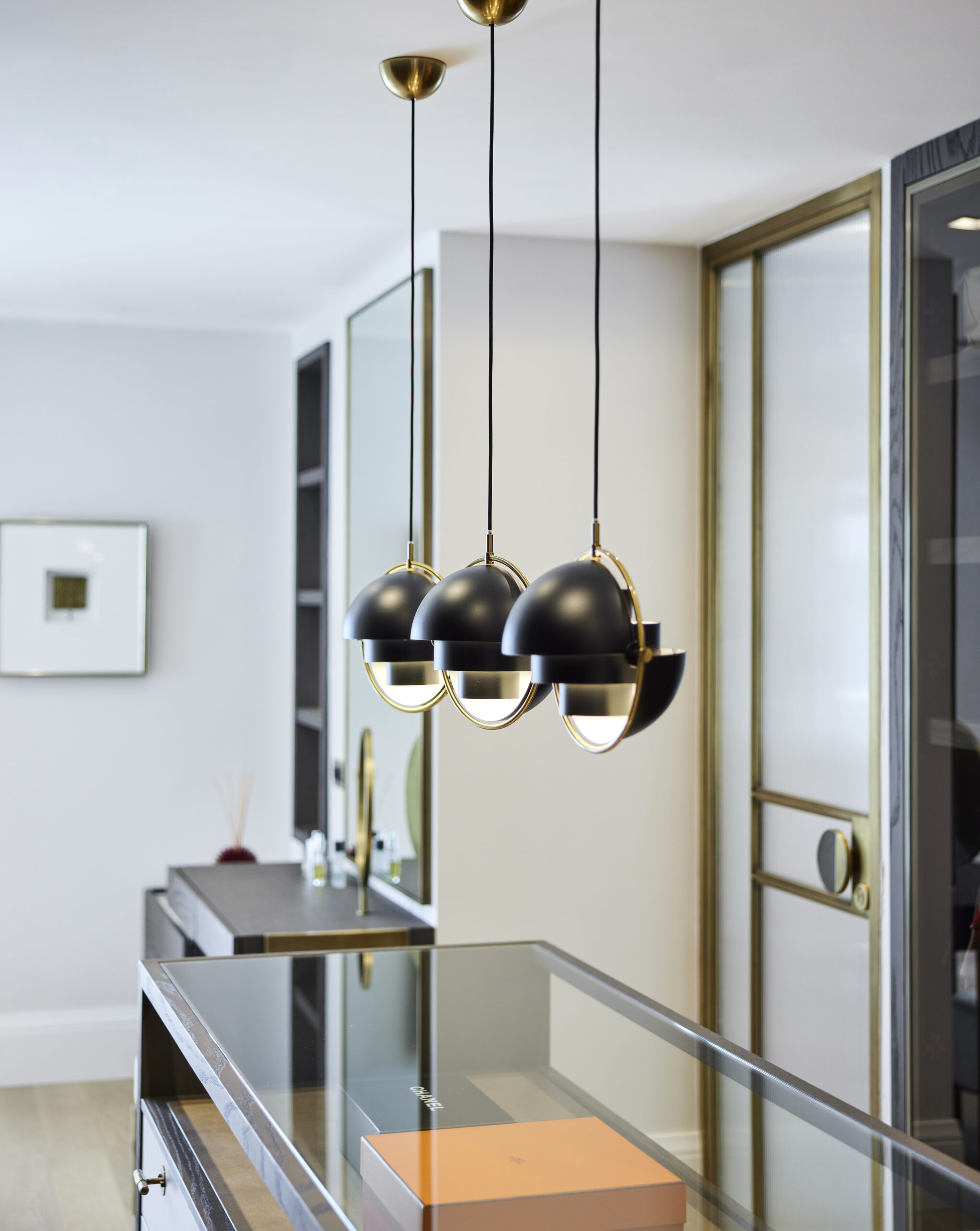 Dekorasyonda sakin, yalın ve net çizgilerin kullanıldığı evde aydınlatma, perde ve zeminlerde de ince detaylar düşünülmüş. “Asma tavan olan alanlarda ankastre beyaz kare spot kullanıldı. Lambri vurgusu için aplik, özel üretim mobilyaların hepsinde de gizli led aydınlatma tercih edildi. Sanat eserleri tablo aplikleri ile vurgulandı. Salon, televizyon odası ve ebeveyn süitinde katlamalı tül ve blackout, erkek çocuk odasında ve ebeveyn banyosunda siyah 50mm mat jaluzi, kız çocuk odasında ise tül ve blackout kullanıldı.