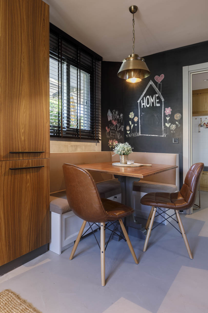Ev sahiplerinin yaşam tarzlarına uygun olarak birlikte vakit geçirebilecekleri, huzurla kitap okuyabilecekleri ve dostlarla yemek yiyip sohbet edebilecekleri bir yaşam alanı tasarlanmış. Projeyi tasarlayan Y. İç Mimar ve Tasarımcı Selina Kazazoğlu’na göre evin tarzı country ve endüstriyelin bir karması. Bu dengeli birliktelik “Home Sweet Home” etkisi yaratıyor diyen tasarımcı, 6 aylık bir süreçte bu mutlu yuvayı sahiplerine teslim etmiş.