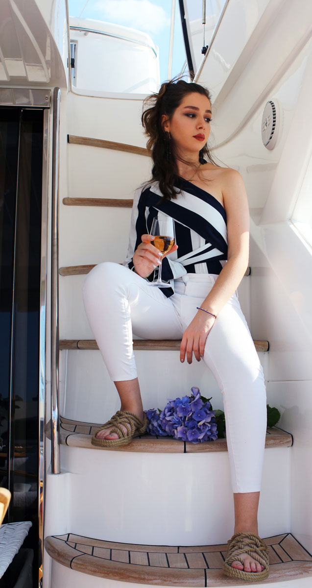 Mavi ve beyaz şüphesiz bu moda akımının vazgeçilmezleri ve bunların tamamlayıcı rengi ise kırmızı. İlk akla gelen parçalar ise mavi beyaz çizgili enine çizgili kıyafetler. Günün her saatine ve gittiğiniz her yere uyarlayabileceğiniz bu stilin anahtar parçalarını sezon trendleriyle birlikte kullanmak benim her zaman tercihim olur. Örneğin bu sezon oldukça trend olan yazlık delikli triko kazakları kullanarak bu stilde farklı bir tarz elde edebilirsiniz. Marin detayların yanına yakıştırdığım bir diğer sezon trendi ise tropik desenler. Sadece üst giyimde değil, alt giyimde de çok fazla rastladığımız tropik desenleri görünümünüze renk katmak için kullanabilirsiniz.