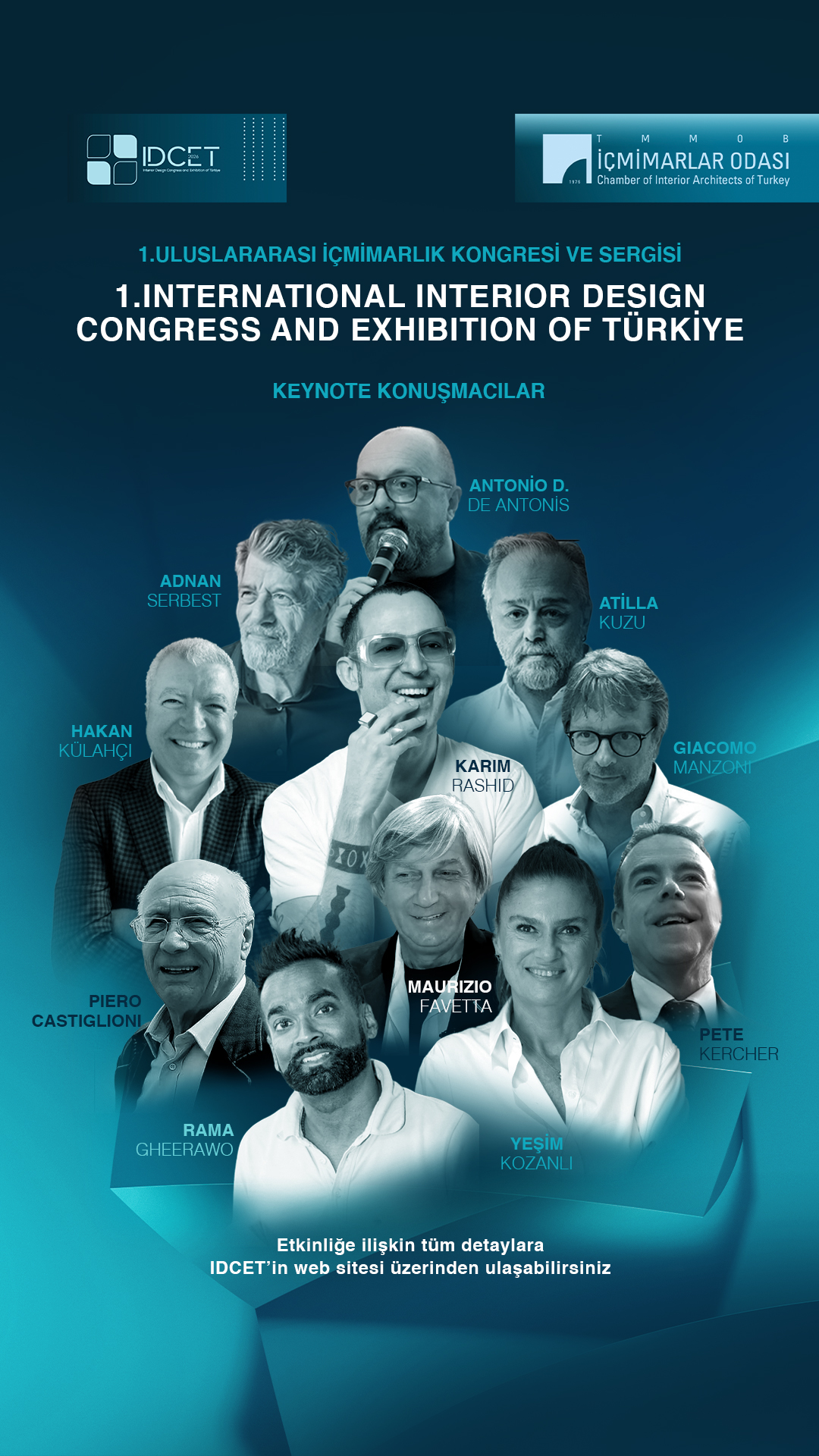 Ülkemizde ilk kez düzenlenecek olan Uluslararası İçmimarlık Kongresi ve Sergisi (IDCET 2026), 12–15 Şubat 2026 tarihleri arasında Antalya’da gerçekleştirilecektir. TMMOB İçmimarlar Odası öncülüğünde ulusal ve uluslararası ölçekte düzenlenen bu önemli etkinlik, içmimarlık ve tasarım alanındaki yenilikçi, kapsayıcı ve ileri teknolojilere dayalı çalışmaları bir araya getirmeyi ve değerlendirmeyi amaçlayan dinamik bir platform sunmaktadır.