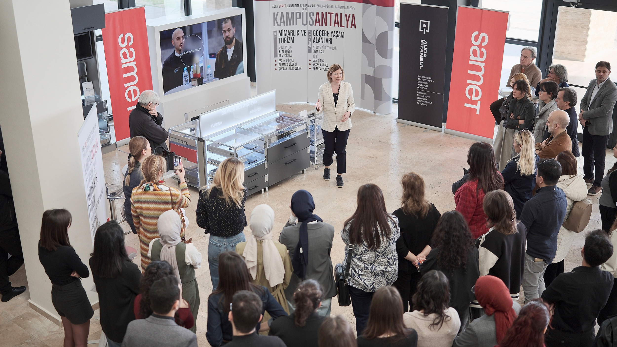 2024 Mart ayında başlayan; Trabzon, Erzurum, Muğla, Kayseri ve Gaziantep şehirlerinde tasarıma ilgi duyan öğrenciler ile düzenlenen atölye ve panellerden oluşan AURA-SAMET KAMPÜS’ün 2025 yılı ilk durağı Antalya’da Akdeniz Üniversitesi Mimarlık Fakültesi oldu.