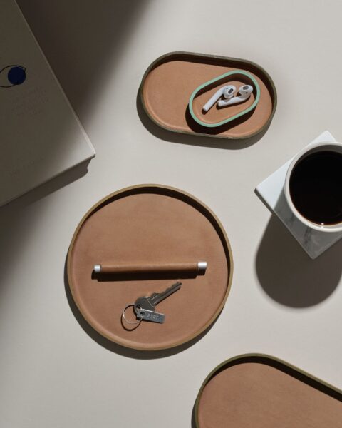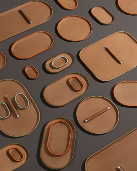 Sade ve sakin olmasının yanında bir o kadar da renkli ve hareketli bir koleksiyon Plato. On adet farklı tepsiden olusan koleksiyon iki ana renk ile sunuyor. Kahverengi ve bej renklerinde sunulan deri tepsilerin bazılarının kenarlarında canlı renkler kullanılmış. Bu renk kombinasyonlarına set olarak veya ayrı ayrı sahip olmak mümkün.