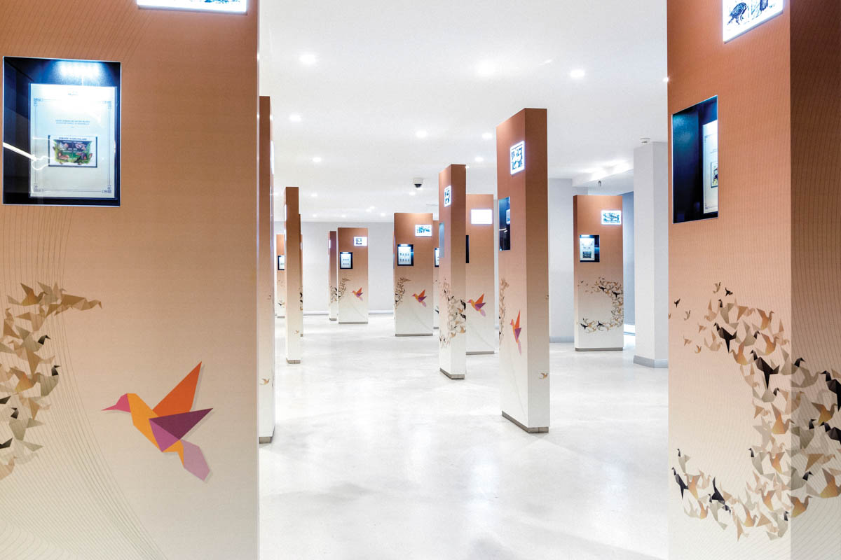 Binanın dışarıdaki resmi ve soğuk iletişim dili, müzeye girildiğinde bir anda yer değiştiriyor. Sadece ziyaretçiyi değil mimarinin kendisini de ters köşe yapıyor. Yaratılan bu şaşırtma duygusu, bireyin, sergilenen iki boyutlu ve küçük ebatlı binlerce pulu incelemeye olan mesafeli tavrını da kırıyor. Tıpkı kendi zihnimizdeki anılar arasında gelip gitmeler gibi, mekan da beklediğimiz ve şaşırdığımız öğeler arasında gidip geliyor. Bu durum bireyi güçlü bir konsantrasyon ile oraya ait hissettiriyor.