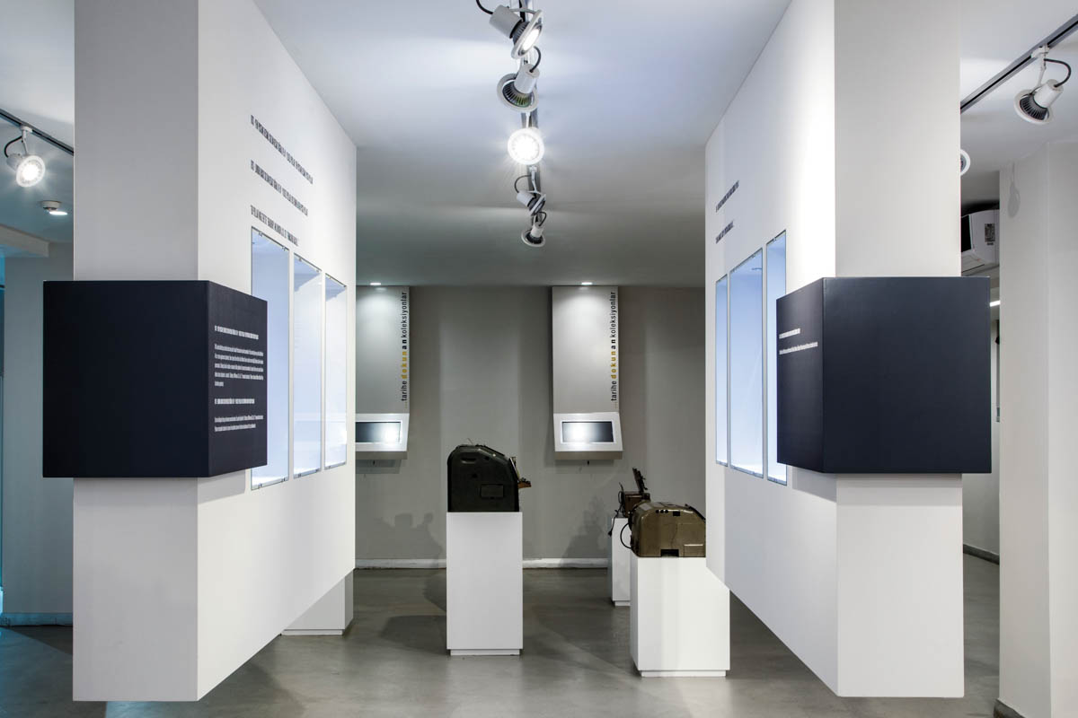 “İstiklal Harbinde PTT” kısmında ise, yüksek sesli sürekli dönen videoda okunan mektubun fazlaca zorlama bir duygusallıkta olması, arkadaki metinleri okumayı zorlaştırdığı gibi sergilenen nesnelerin algılanmasındaki konsantrasyonu güçleştiriyor. Yine de bu noktada ilginç bir kurgu söz konusu. Teknolojik kioskların taşlar arasından çıkması hiç karşılaşmayı düşünmediğim ilginç bir eşleştirme. Doğal bir malzemenin insan ürünü teknoloji ile birlikteliği diyebiliriz. Zemin katın orta alanı, bir parantez içerisine alınmışçasına kavisli formdaki iki seperatörün arasında tanımlanıyor. Seperatörlerin bu formu ziyaretçiyi sarıp sarmalıyor. Ünitelerdeki interaktif dijital ekranlar, konsantrasyonun azalma noktasında devreye giriyor ve ilgiyi canlı tutuyor. Zemin yükseklik farkları ve bu alanlarda kullanılan farklı malzemelerle sergileme bölümleri netleştiriliyor. Yapının kolonları ile doğal bir şekilde alan tanımı netleşen bu bölümde haberleşme ekipmanları sergileniyor. Sergileme ünitelerinin posta güvercini metaforu ile taşınıyormuş gibi kurgulanması keyifli bir espri katıyor.