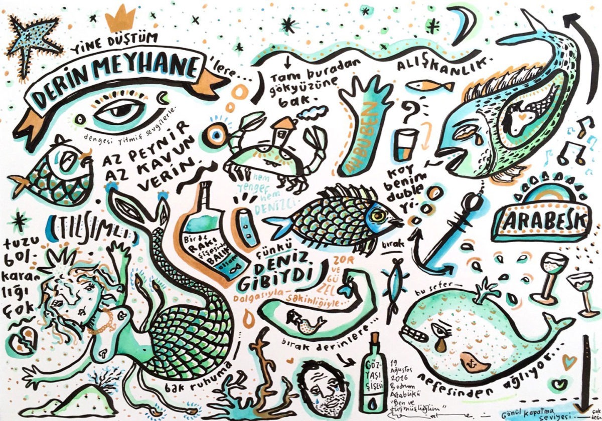 Ben 24 saat yaşayan bir atölyede çalışıyorum. Burası hem evim hem çalışma alanım. Günün kalabalık saatlerini daha çok araştırmalarıma ayırıyorum. Çizim yapmaya ise şehrin gürültüsü durulduktan sonra başlıyorum. Haliyle uzun soluklu oluyor, gece 3-5… Arada bir şeyler içmeye çıkıyorum, nefes alıyorum. Sonra yine devam. Eğer bir sergi hazırlığındaysam o büyünün bozulmaması ve ilhamımı korumak için günlerce atölyeden dışarı adım atmadığım oluyor. Bundan hiç şikayetçi değilim, aksine mutlu oluyorum. Kurumsal yaptığım projelerde ise bir onaylatma/beğendirme kaygısı taşıdığım için birazcık daha stresli bir ortam hakim oluyor:) Bunun dışında atölyede yaratıcı illüstrasyon dersi verdiğim yirmiye yakın öğrencim var. Onlarla geçirdiğim keyifli vakitler bu mekana ayrı bir enerji veriyor.