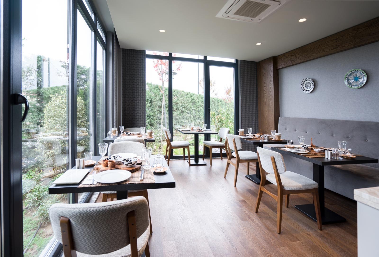 Kış bahçesinin içinde konumlanan kahvaltı odası, zeytin ağaçlarına karşı zeytin ağacından yapılmış sofra aksesuarları ve Bursa çinisi kaselerde servis edilen yerel tatlara ev sahipliği yapıyor. Otelin içerisinde rahatlamak isteyenler için ise buhar ve masaj odalarının tadını çıkarmak kalıyor.