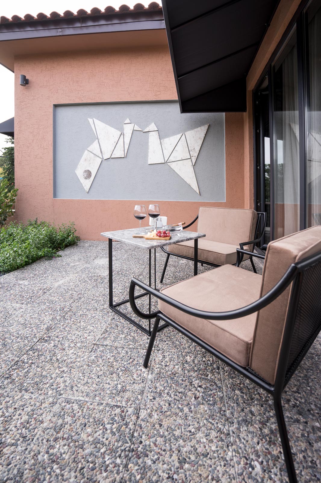 Otelin duvarlarında mekana özel uygulanmış sanat eserleri göze çarpıyor. Atölye Sanat sanatçılarına ait tablolar lobide ve bazı odalarda karşımıza çıkarken mini bahçe için tasarladıkları özel duvar uygulaması ise otele ayrı bir hava katıyor. Genel olarak tüm odaların yatak başlarında yer alan görseller ise fotoğrafçı Zeynep Diniz’e ait. Hacıbeyoğlu’nun üç ay gibi kısa bir sürede tamamladığı proje; şimdiden iş dünyasında dikkatleri üzerine çekiyor.